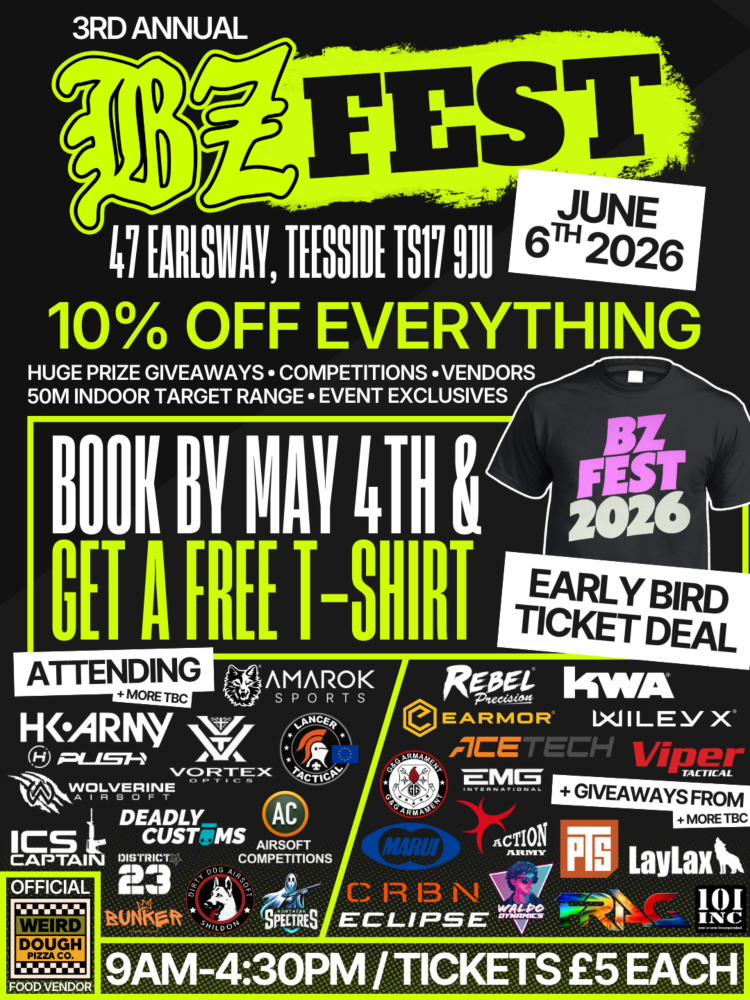 - Entry to our 50m Indoor Target Range where attendees aged 12yrs+ get to try out new airsoft replicas (Full range schedule TBC)